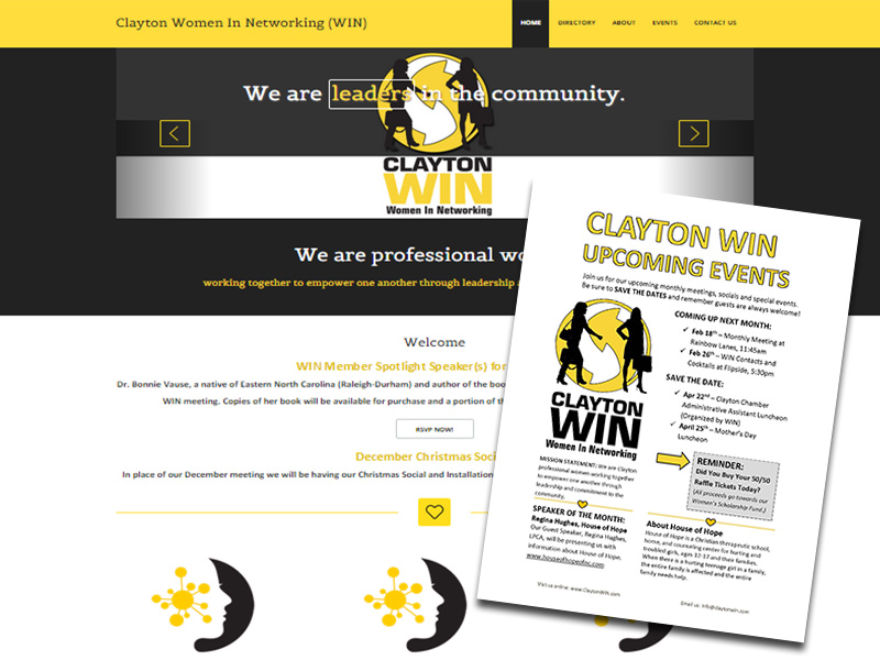 Clayton Women in Networking (WIN) Website, Logo and Flyer Design. Web Marketing and Event Promotion.