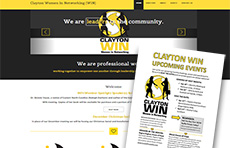 Clayton Women in Networking (WIN) Website, Logo and Flyer Design. Web Marketing and Event Promotion.